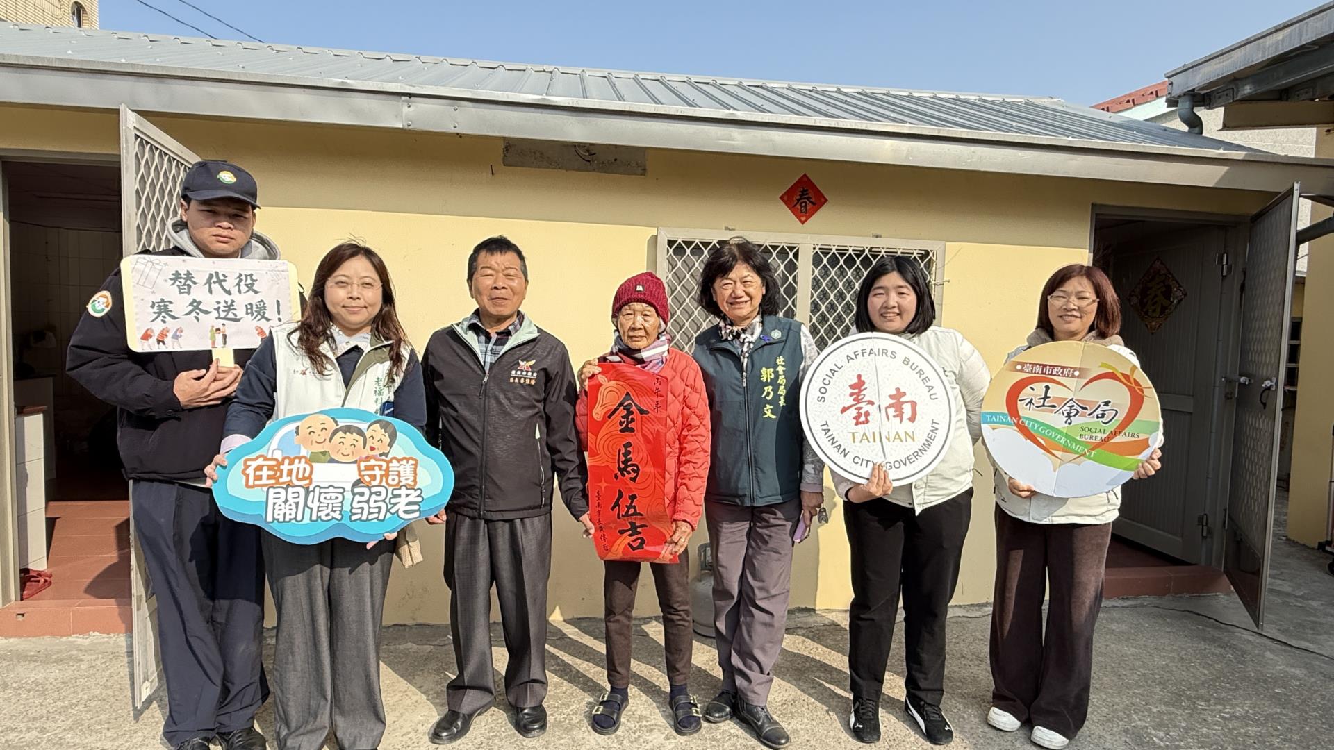 黃偉哲市長率領臺南市府團隊打造高齡友善城市,積極布建社區照顧關懷據點服務長輩;為讓長輩溫暖過好年,農曆節前夕「幸福加馬」